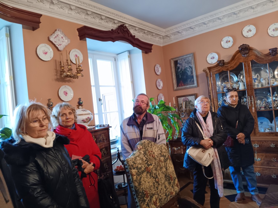 18.listopada 2025 roku pojechaliśmy na dawno zaplanowaną pobliską wycieczkę. Pogoda była zamówiona. W Śmiłowie zwiedziliśmy niepozorny z zewnątrz a piękny w środku XVIII wieczny Dworek Wiercińskich. Śmiłowski dwór zbudował pod koniec XVIII wieku w barokowym stylu Józef Wierciński. Przez wieki dwór zmieniał właścicieli i w końcu popadł w ruinę. 25 lat temu budynek wraz z otaczającym parkiem kupili Janina i Bogdan Szczerbowscy. Po odrestaurowaniu obiekt udostępniony został do zwiedzania.